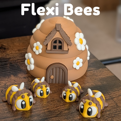 Articulated Flexi Bee Fidget Toy with Beehive Container – 3D Printed Sensory Toy
